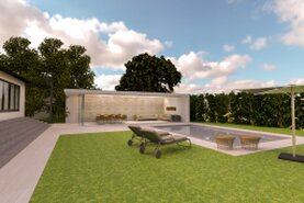 3D Visualisierungen Neubau Outdoor Bereich mit Pool